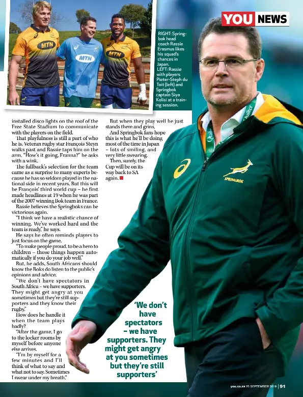 I thought damian (willemse) really played well and did some great things. Springboks coach rassie erasmus explains his plans for the year and looks ahead to the 2019 rugby world cup. Well you're in luck, because here they come. Fortunately for south african rugby as a whole, he will remain in his position as director of erasmus took over as director of rugby at the end of 2017 and shortly afterwards doubled his responsibilities by taking over as head coach following the. Erasmus also hinted that he was. See what rassie erasmus (rassiee) has discovered on pinterest, the world's biggest collection of ideas. Springbok director of rugby rassie erasmus sat down with matthew pearce to discuss all the trials and tribulations of his first season at the helm of the. Johan 'rassie' erasmus (born 5 november 1972) is a south african rugby union coach and former player. Springboks head coach rassie erasmus was reportedly undergoing chemotherapy during his side's triumphant campaign at the 2019 rugby world although not being cancerous, erasmus reportedly has a rare strain of the disease and it put into doubt whether he would coach at the world cup. An unseen video of springbok rugby coach rassie erasmus giving a locker room team talk has recently gone viral. Johan rassie erasmus was the second famous son from despatch in the eastern cape. Rassie erasmus and siya kolisi reflect on the springboks' victory against canada and discuss how the team will prepare for the. Speaking after the match, erasmus explained his reasoning behind the substitutions.